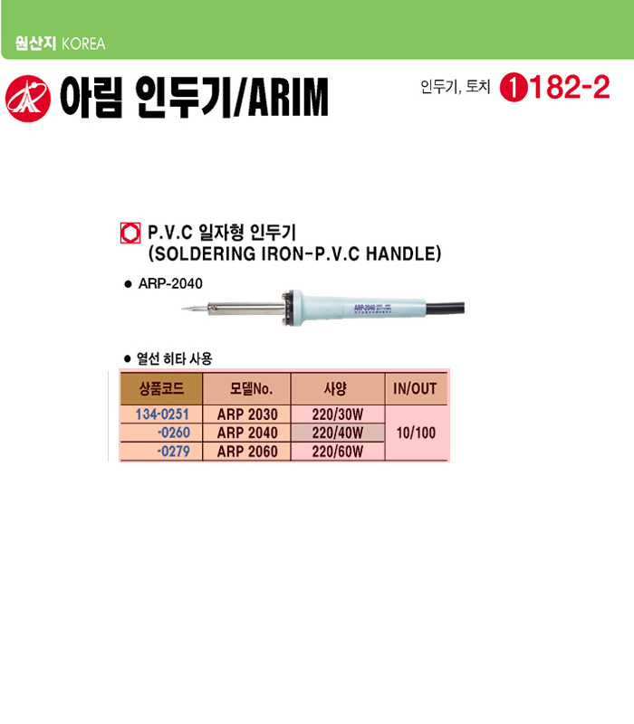 [ARIM]PVC ÀÏÀÚÇü Àεαâ(ARP2040, 220C.60Watt)(PVC Handle Soldering Iron)