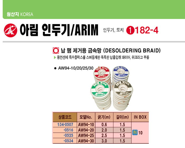 [ARIM]³³¶« Á¦°Å¿ë ±Ý¼Ó¸Á(AW94-30, 3.0mm, 1.5¹ÌÅÍ, 10°³¹­À½)(Desoldering Braid)=>Á¦Ç°´ÜÁ¾!