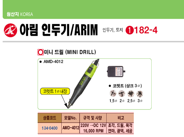 [ARIM]¹Ì´Ïµå¸±(AMD-4012, 12V, 16000RPM)(Mini Drill)