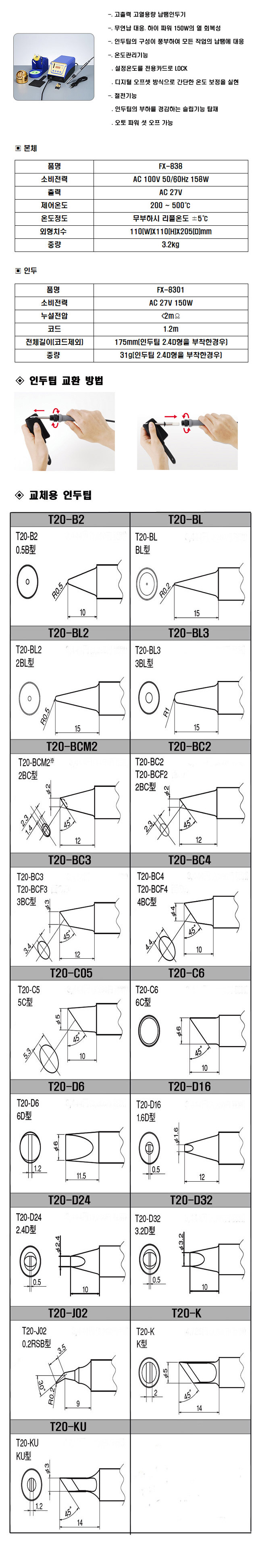 [HAKKO]HAKKOA T20-BC2 /FX-838(150W)¿ë...