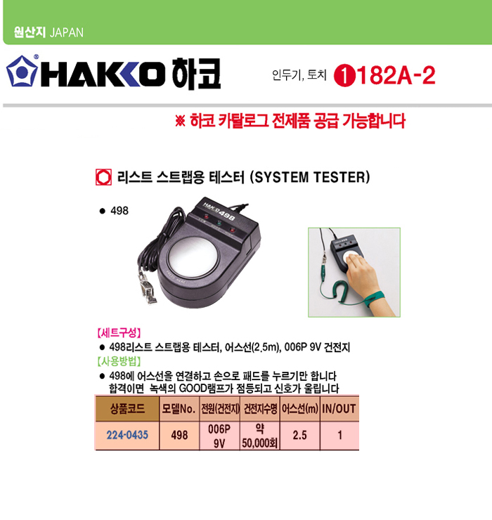 [HAKKO]¸®½ºÆ® ½ºÆ®·¦¿ë Å×½ºÅÍ(498, 006 9V)(System Tester)