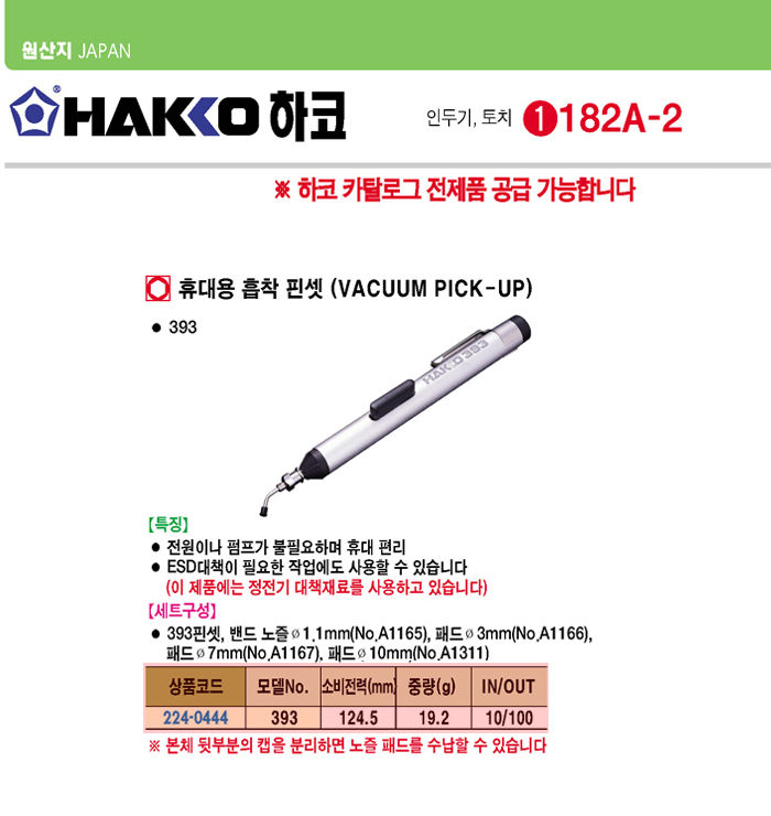 [HAKKO]ÈÞ´ë¿ë ÈíÂø ÇɼÂ(HAKKO 393, 124.5mm)(Vacuum Pick-Up)