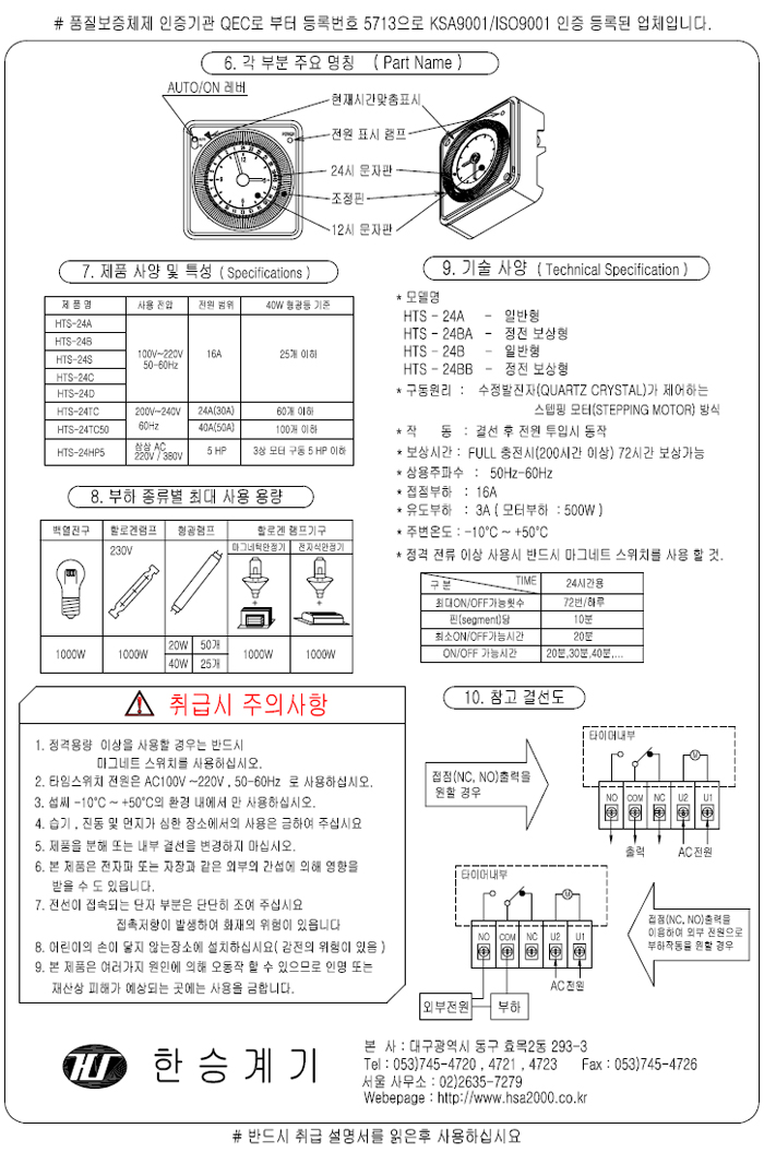 [ÇѽÂ]24½Ã°£ ŸÀ̸Ó/¾Æ³¯·Î±×ŸÀÓ½ºÀ§Ä¡(HTS-24A, ¸ÅÀÔÇü Á¢Á¡Á¦°øÇü, ÀϹÝÇü)(VATÆ÷ÇÔ)