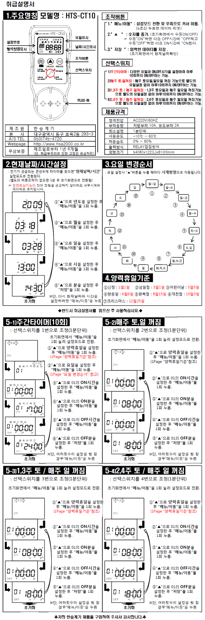 [ÇѽÂ]µðÁöÅРŸÀÓ½ºÀ§Ä¡(HTS-CT10, 10A, ¸±·¹ÀÌÃâ·Â, Äܼ¾Æ®Çü)(VATÆ÷ÇÔ)
