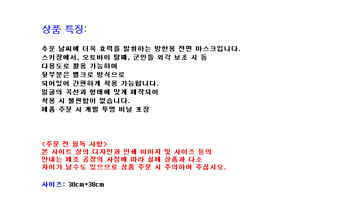 [DT]¹æÇÑ¿ë Àü¸é ¸¶½ºÅ©(±¹¹æ»ö, 300x380mm)(GTS8363)