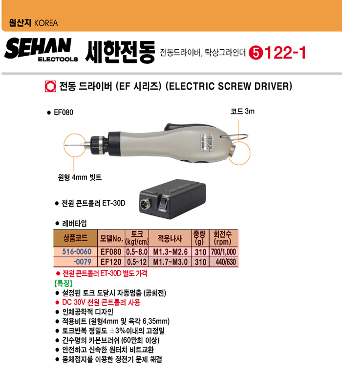 [¼¼ÇÑ]Àüµ¿ µå¶óÀ̹ö(EF-080, ·¹¹öŸÀÔ, ÄÜÆ®·Ñ·¯ º°¸Å, M1.3-M2.6, 700/1000RPM)(Electric Screw Driver)