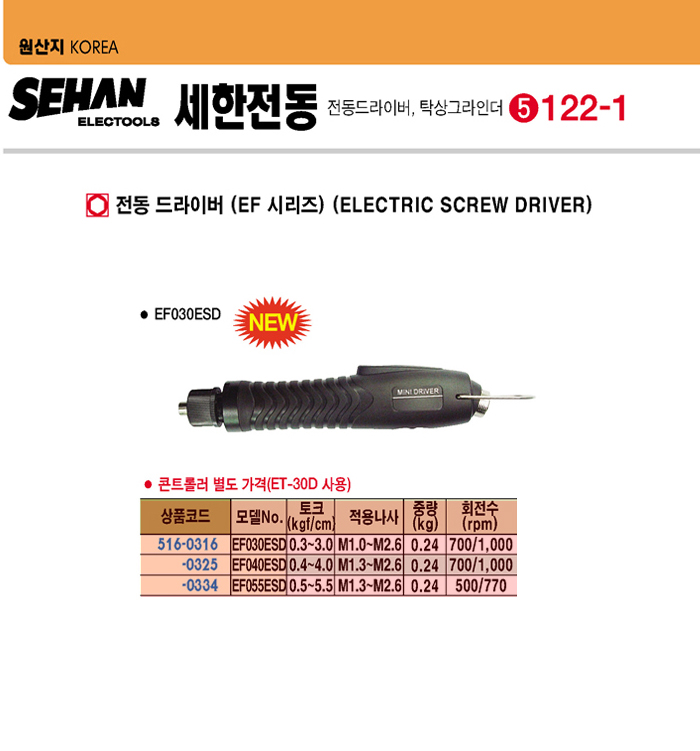 [¼¼ÇÑ]Àüµ¿ µå¶óÀ̹ö(EF-055ESD, ·¹¹öŸÀÔ, ÄÜÆ®·Ñ·¯ º°¸Å, M1.3-M2.6, 500/770RPM)(Electric Screw Driver):2/6 ÇöÀç ÀϽÃǰÀý!!