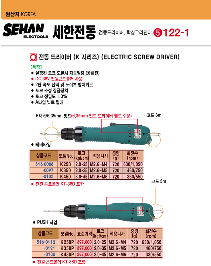 [¼¼ÇÑ]Àüµ¿ µå¶óÀ̹ö(K-250P, PUSHŸÀÔ, ÄÜÆ®·Ñ·¯Æ÷ÇÔ, M2.6-M4, 630/1050RPM)(Electric Screw Driver):2/6 ÇöÀç ÀϽÃǰÀý!!