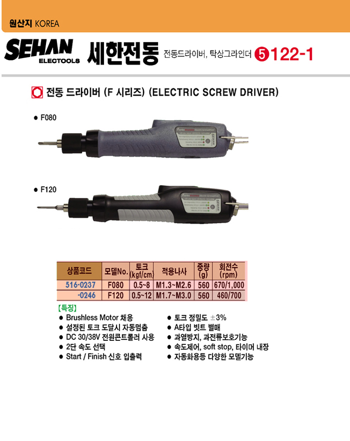 [¼¼ÇÑ]Àüµ¿ µå¶óÀ̹ö(F-080 (ÄÜÆ®·Ñ·¯ º°µµ), M1.3-M2.6, 670/1000RPM)(Electric Screw Driver):2/6 ÇöÀç ÀϽÃǰÀý!!