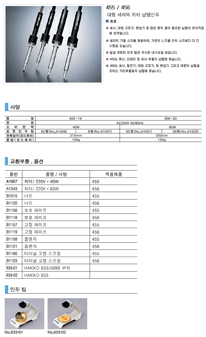 [HAKKO]¼¼¶ó¹ÍÀεαâ(456-20, 220V, 50Watt, NO A1023ÆÁ)(Ceramic Soldering Iron)(½ºÆ½Àεαâ)=>Á¦Ç°´ÜÁ¾!
