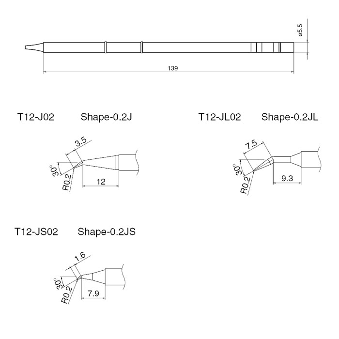 [HAKKO]FX-951/FX-952/FM-202/FM-203/HAKKO-942/FM-2028 °ø¿ëÆÁ(T12-J02 Shape-0.2J)