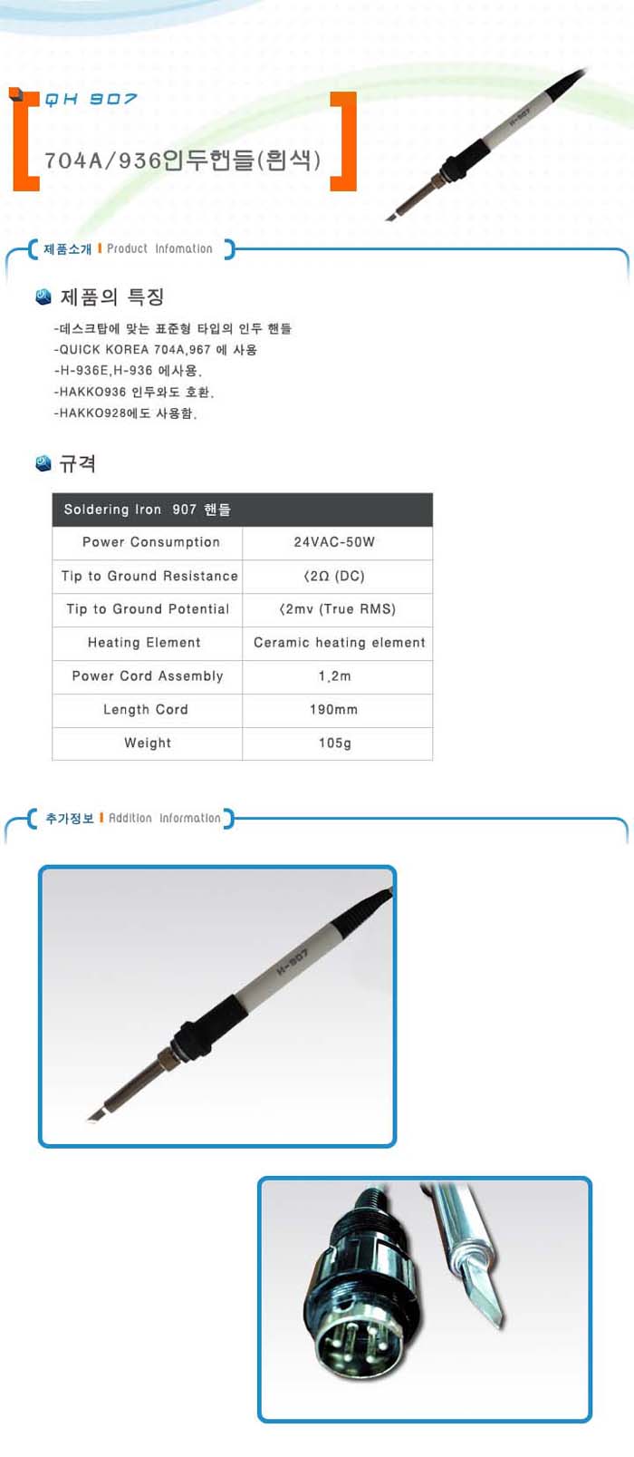 [QK]¼¼¶ó¹ÍÀεÎÇÚµé(QK907, QK704A/HAKKO 936/928¿ë)-°ËÁ¤»ö(¹é»ö+Á¤Àü±â¹æÁö/Á¦Àüó¸®)