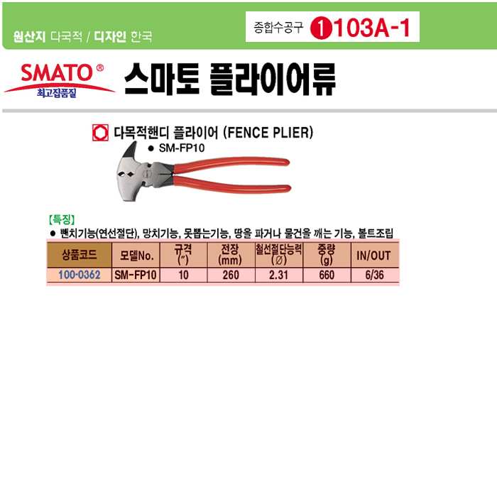 [½º¸¶Åä] ´Ù¸ñÀûÇÚµð ÇöóÀ̾î(SM-FP10, 260mm, 10ÀÎÄ¡)(Fence Plier)
