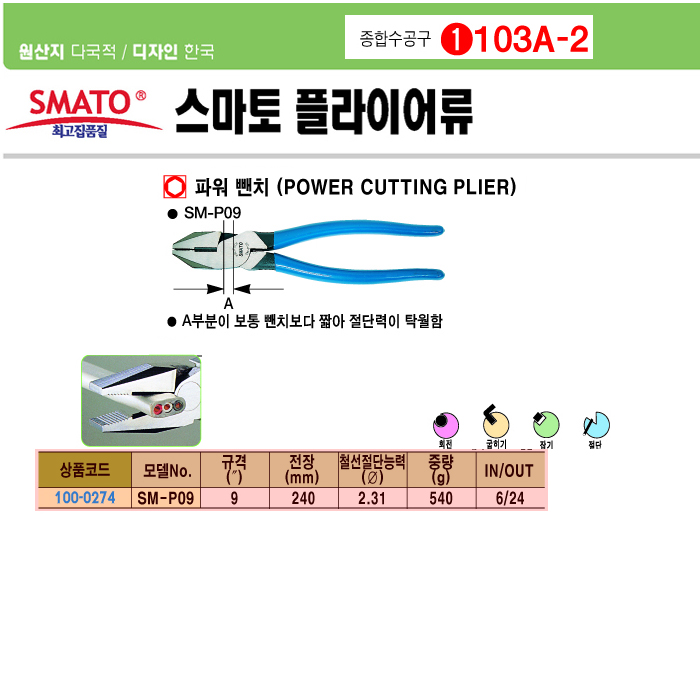 [½º¸¶Åä] ÆÄ¿ö»«Ä¡(SM-P09, 240mm, 9ÀÎÄ¡)(Power Cutting Plier)