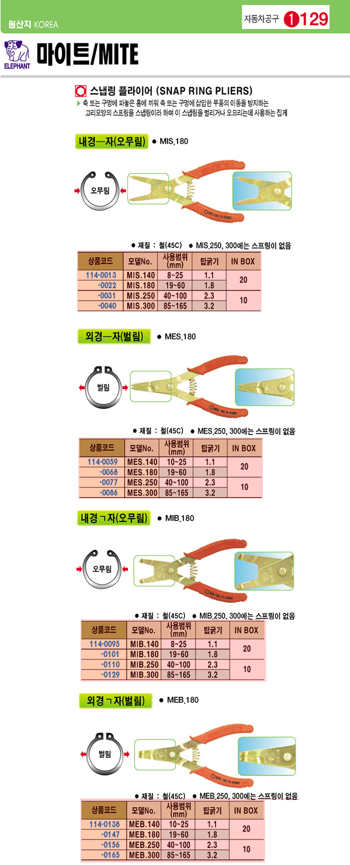 [¸¶ÀÌÆ®] ½º³À¸µ ÇöóÀÌ¾î ¿Ü°æ ¤Ñ ÀÚ (MES.180, 19-60mm, Á÷ ¹ú¸²)(Snap Ring Pliers External ¤Ñ type)