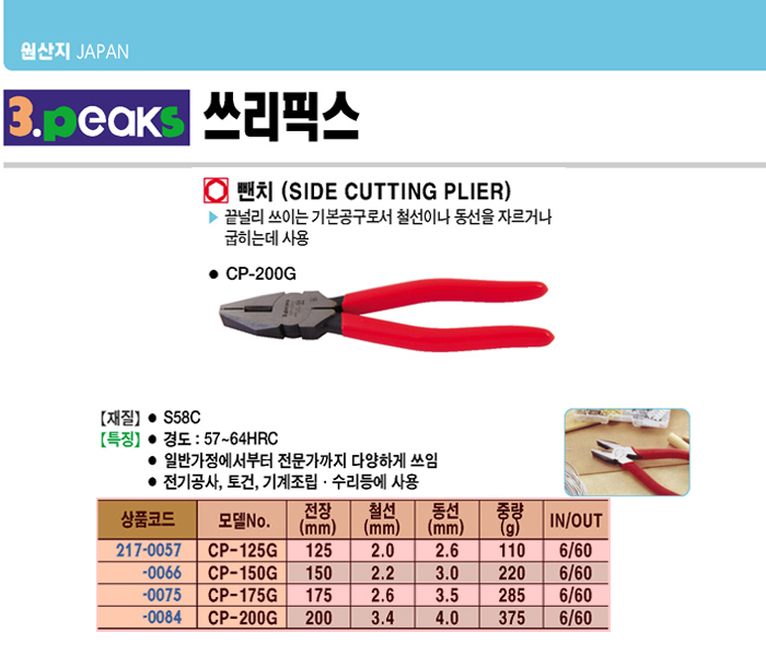 [3peaks] »«Ä¡(CP-150G, 150mm)(Side Cutting Plier)