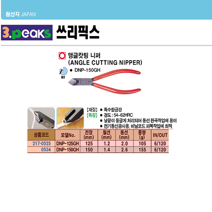 [3peaks] ¾Þ±ÛıÆÃ ´ÏÆÛ(DNP-150GH, 150mm)(Angle Cutting Nipper)