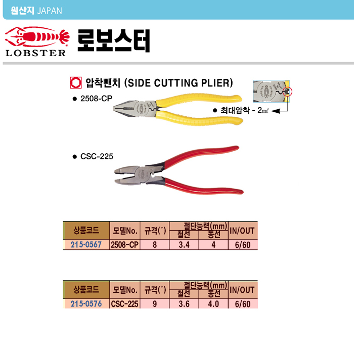 [·Îº¸½ºÅÍ] ¾ÐÂø»«Ä¡(CSC-225, 9ÀÎÄ¡)(Side Cutting Plier)