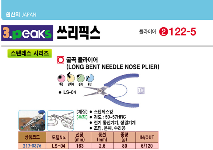 [3peaks] ½ºÅÙ·¹½º ±¼°îÇöóÀ̾î(LS-04, 163mm)(Long Bent Plier)