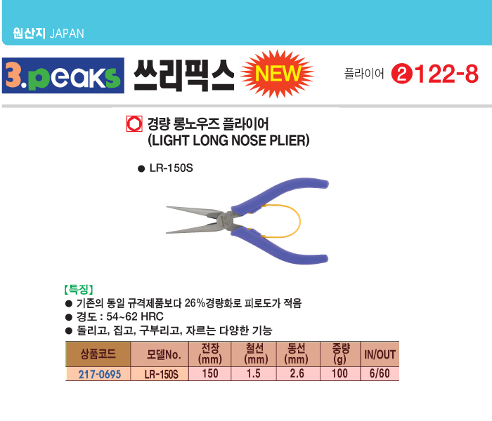 [3peaks] °æ·® ·Õ³ë¿ìÁî ÇöóÀ̾î(LR-150S, 150mm)(Light Long Nose Plier)