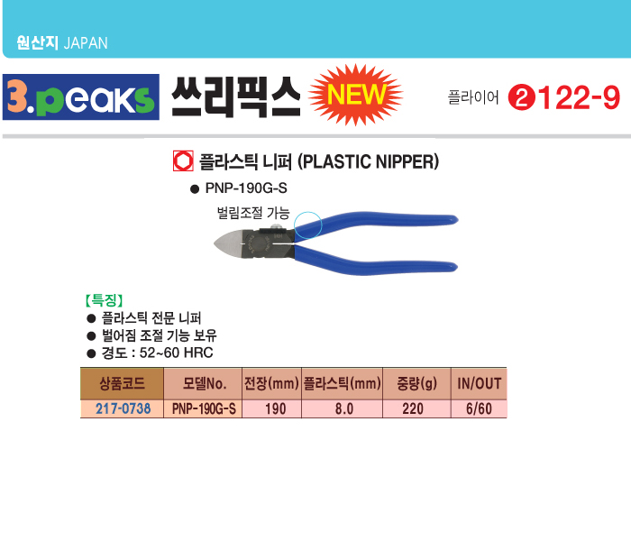 [3peaks] ÇÃ¶ó½ºÆ½ ´ÏÆÛ(PNP-190G-S, 190mm)(Plastic Nipper)