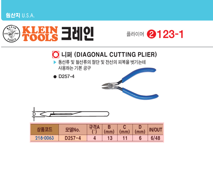 [Å©·¹ÀÎ] ´ÏÆÛ(D257-4, 4ÀÎÄ¡)(Diagonal Cutting Plier)