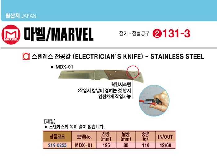 [¸¶º§]½ºÅÙ·¹½º Àü°øÄ®(MDX-01, 195mm)(Stainless Steel Electrican's Knife)