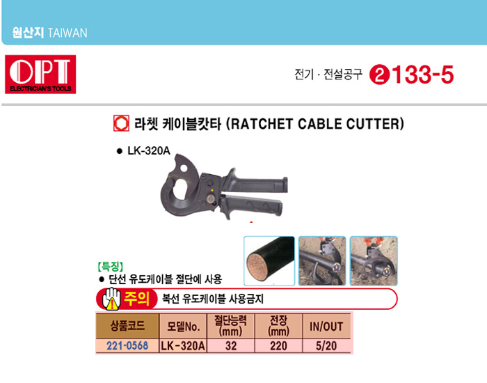 [OPT] ¶óàÄÉÀ̺í ıŸ(LK-320A, Àý´Ü´É·Â:32mm)(Ratchet Wire Cutter)