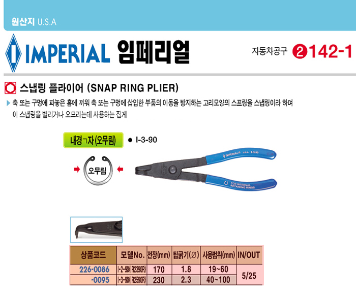 [Àӯ䏮¾ó]½º³À¸µÇöóÀÌ¾î ³»°æ¤¡ÀÚ ¿À¹«¸²(I-3-90/IR2590R, 40-100mm)(Snap ring plier)