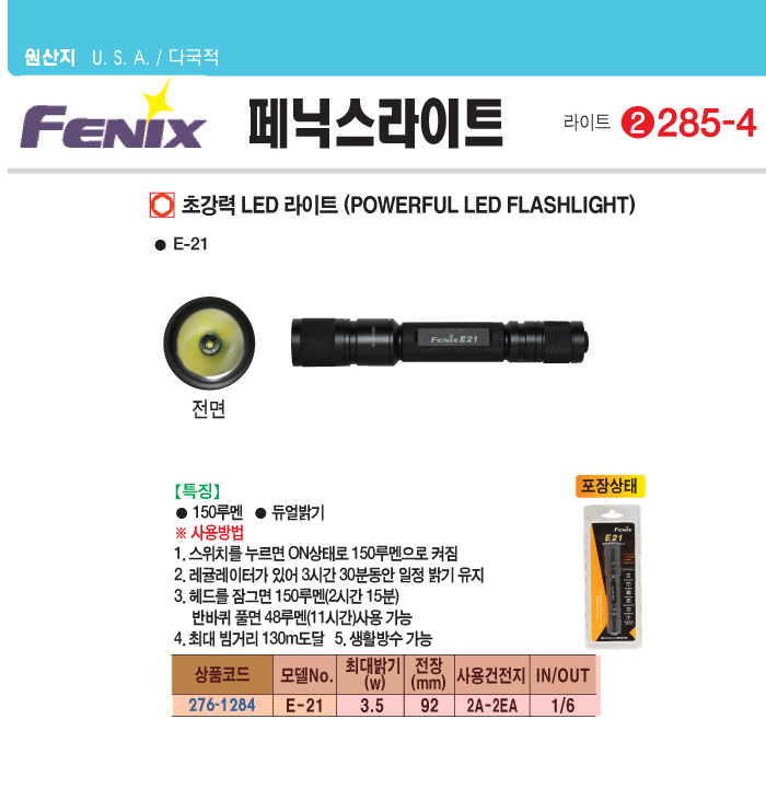 [Æä´Ð½º]Ãʰ­·Â LED ¶óÀÌÆ®(E-21, 3.5Watt/150·ç¸à)(POWERFUL LED FLASHLIGHT)