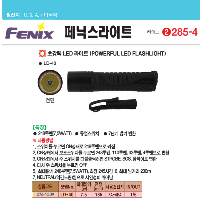 [Æä´Ð½º]Ãʰ­·Â LED ¶óÀÌÆ®(LD-40, 7.5Watt/248·ç¸à)(POWERFUL LED FLASHLIGHT)