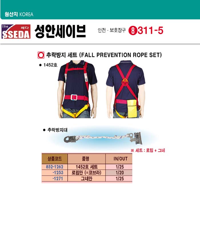 [¼º¾È¼¼À̺ê/¼¼´Ù/SSEDA] Ãß¶ô¹æÁö¼¼Æ®(Á¦1452È£ÀÇ ±×³×¸¸ °ø±Þ, ·ÎÇÁÁ¦¿Ü)(FALL PREVENTION ROPE SET):1/24 ÇöÀç ÀϽÃǰÀý!!