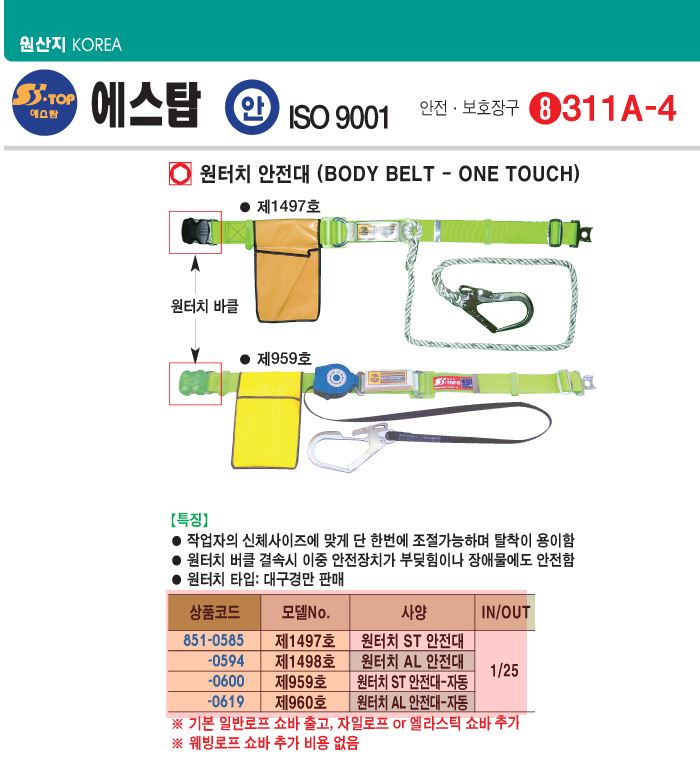 [¿¡½ºÅ¾] ¿øÅÍÄ¡ ¾ÈÀü´ë(Á¦1498È£/SHB4009, ¿øÅÍÄ¡AL¾ÈÀü´ë)(BODY BELT - ONE TOUCH):2/27 ÇöÀç ÀϽÃǰÀý!!