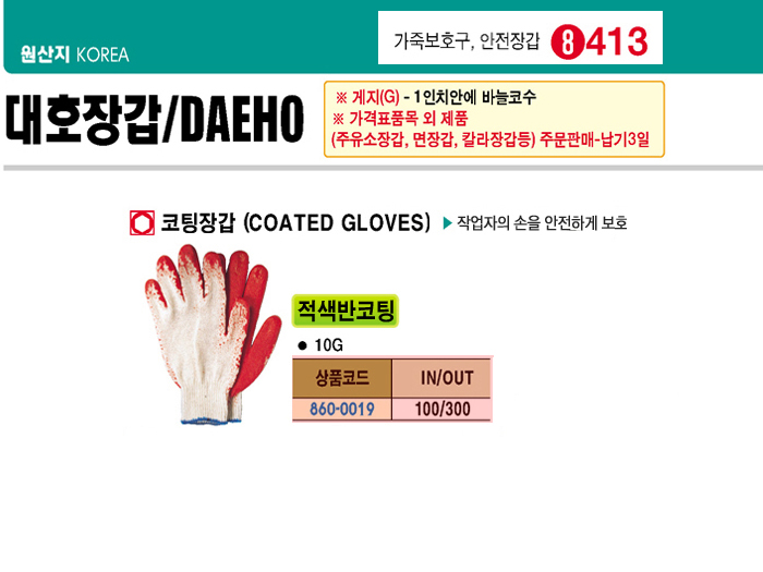 [´ëÈ£] Àû»ö¹ÝÄÚÆÃÀå°©(COATED GLOVES)(100¼¼Æ® ¹­À½):´ÜÁ¾!!
