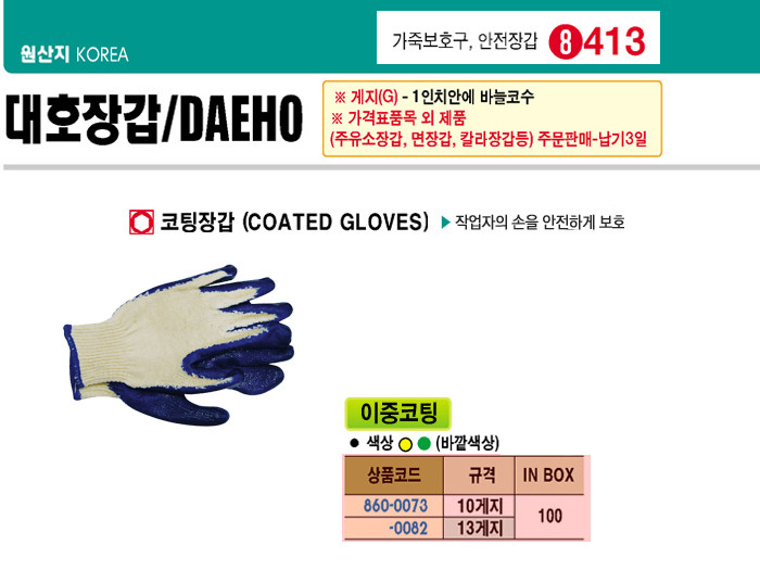 [´ëÈ£] ÀÌÁßÄÚÆÃÀå°©(13°ÔÀÌÁö)(COATED GLOVES)(100¼¼Æ® ¹­À½)(ÁÖ¹®Àü Àç°íÀ¯¹« È®ÀÎ)