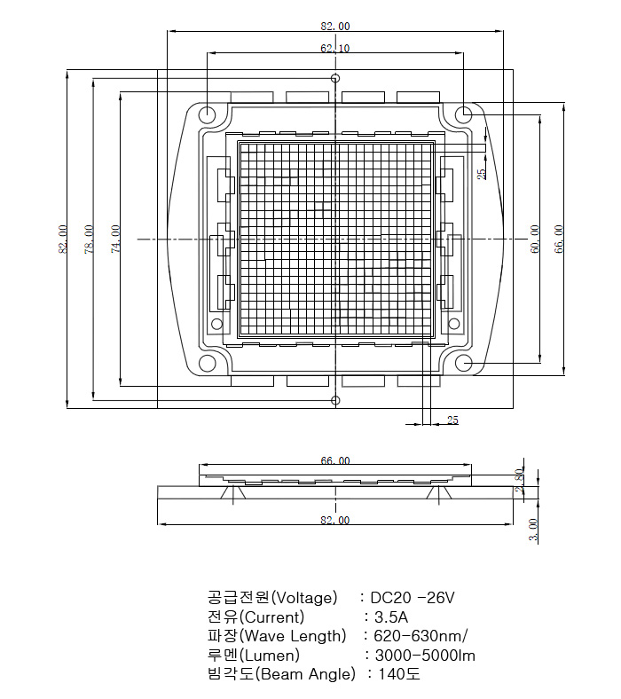 [WT] 100Watt ´ëÇü Àû»ö LEDĨ DC20-26V/3.5A/620-630nm/3000-5000lm(100Watt Red Led chips Ư¼öÁ¶¸í¿ë)