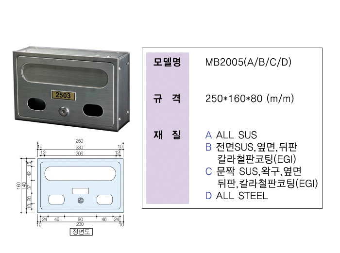 [MB] ¿ìÆíÇÔ MB2005(»çÀÌÁî:250*160*80mm) AÇü/BÇü¸¸ °ø±Þ°¡´É(CÇü/DÇü:Á¦Ç°´ÜÁ¾)