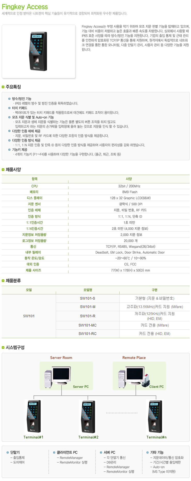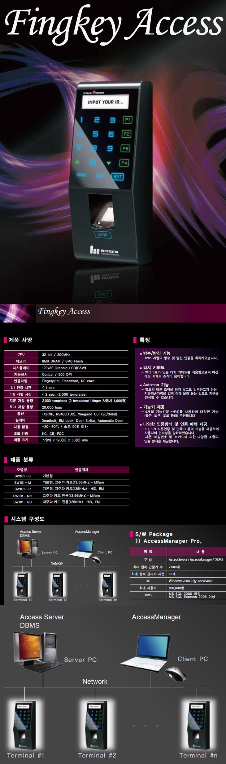 [´ÏÆ®Á¨] Fingkey Access(º¸À̽º Standard Type, ÃâÀÔÅëÁ¦´Ü¸»±â, Áö¹®Àνıâ + RF½Ã½ºÅÛ ¼±Åð¡´É)