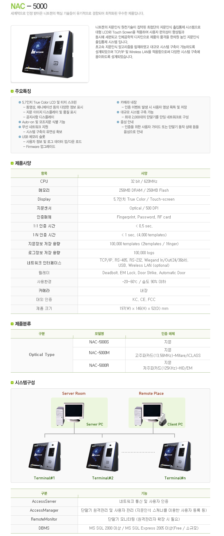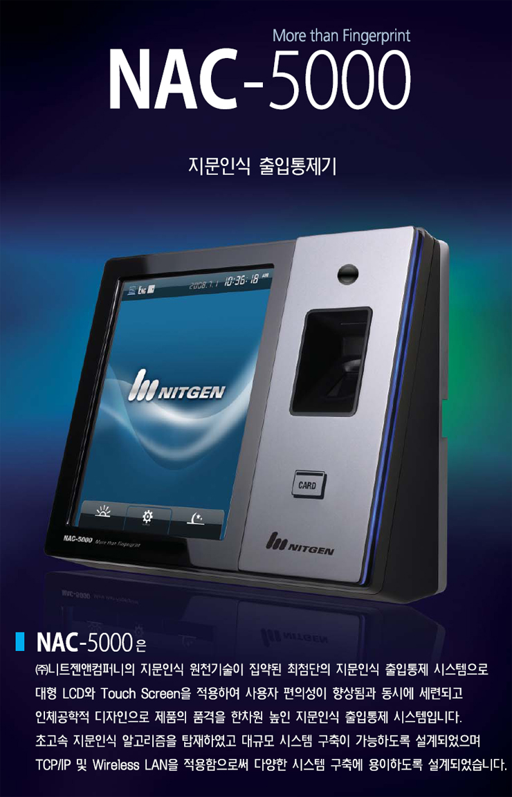 [´ÏÆ®Á¨] NAC-5000(Áö¹®ÀÎ½Ä ÃâÀÔÅëÁ¦±â, 5.7ÀÎÄ¡ LCD + ÅÍÄ¡½ºÅ©¸°)