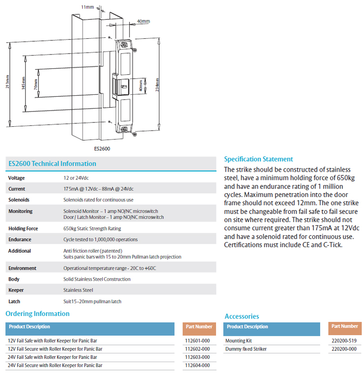 [ID] Trimec ES2600 Series Monitored Electric Strike