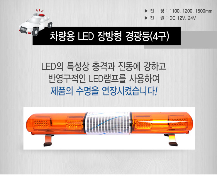 [KS] 4±¸ 12V 1100mm LED Â÷·®¿ë À广Çü °æ±¤µî (KS-1100DCL4)=>Á¦Ç°´ÜÁ¾!