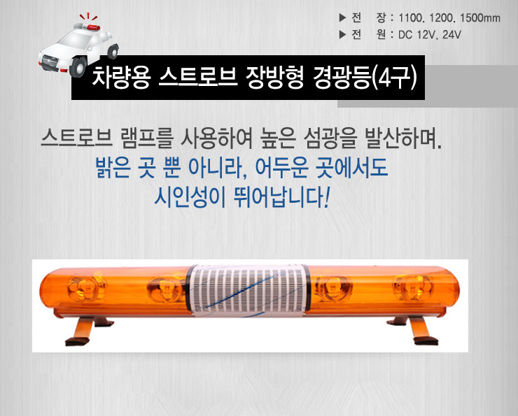 [KS] 12V 1200mm 4±¸ ½ºÆ®·Îºê Â÷·®¿ë À广Çü °æ±¤µî(KS-1200DCS4) - 1Åæ È­¹°Â÷ Àü¿ë=>Á¦Ç°´ÜÁ¾!