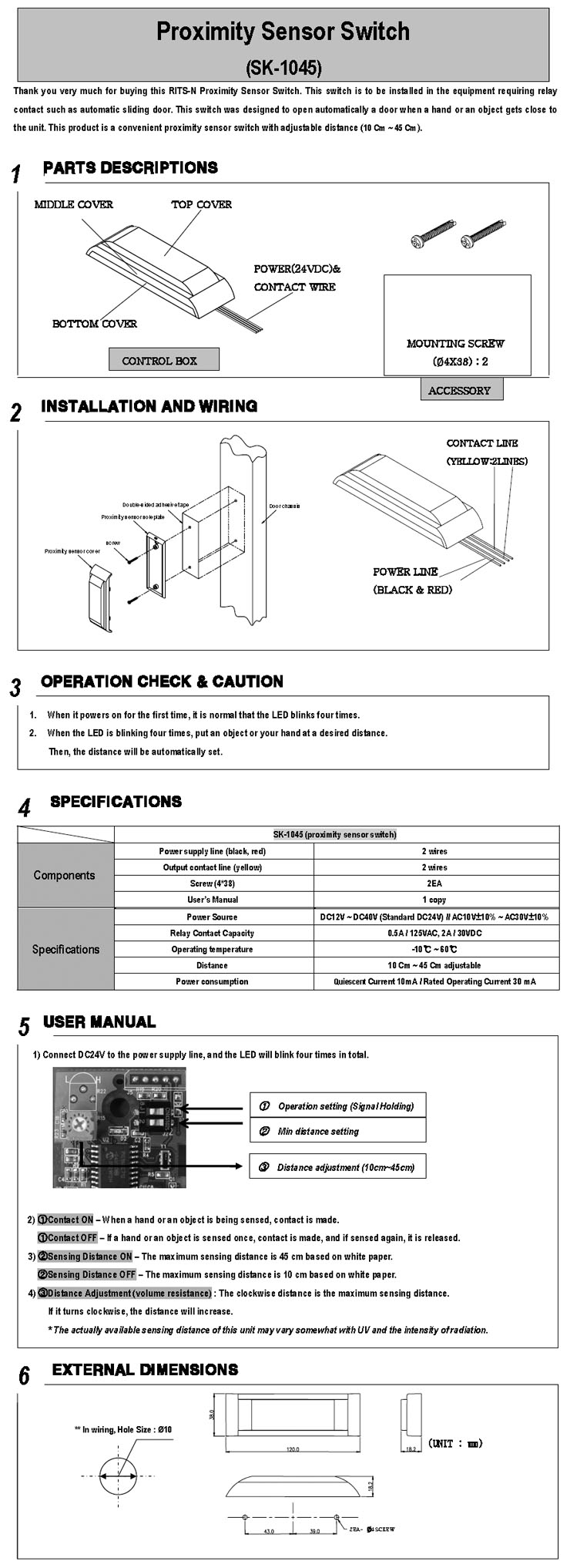 [RITS] ºñÁ¢Ã˽ĽºÀ§Ä¡/¹«±Õ½Ç ȤÀº ¼ö¼ú½Ç ½ºÀ§Ä¡(SK-1045 : Proximity Sensor Switch):´ÜÁ¾!!