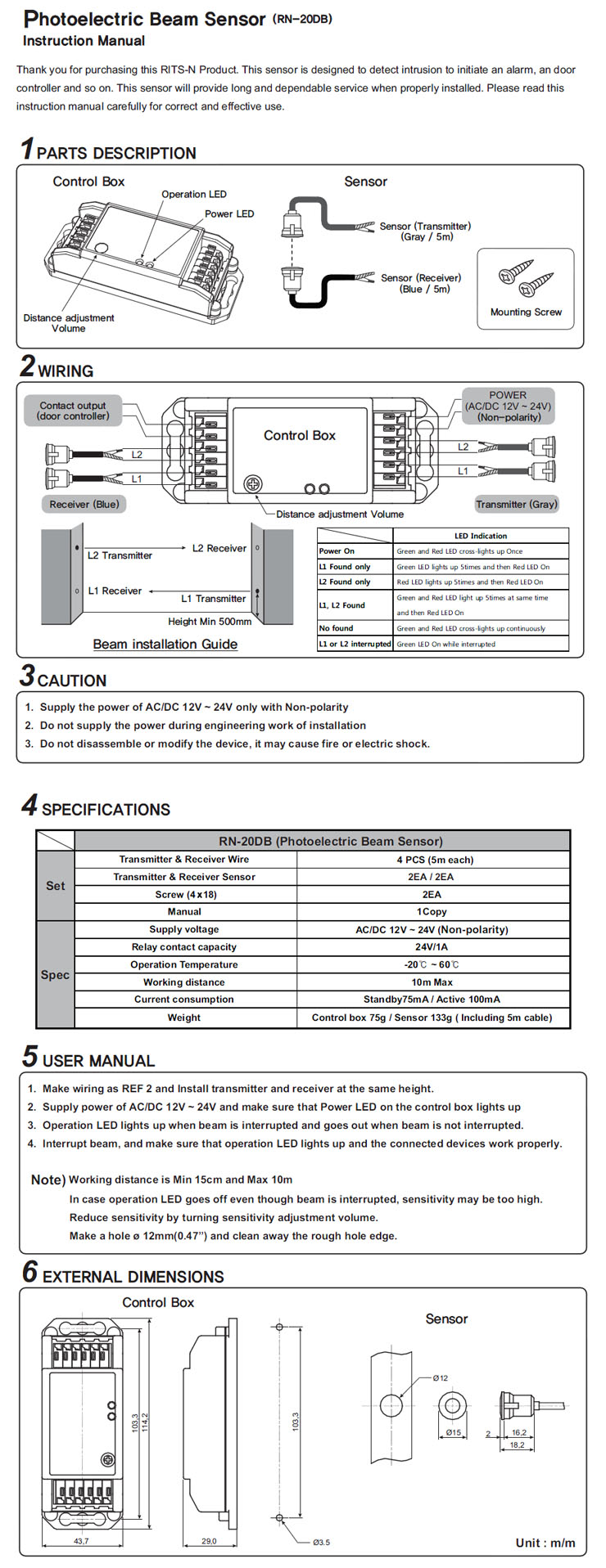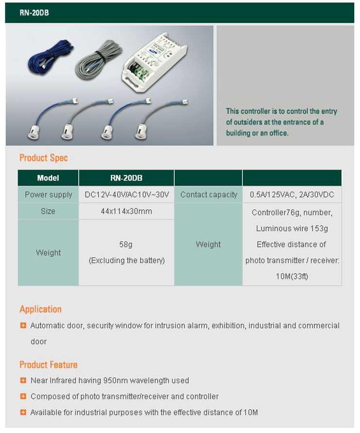 [RITS] 2ºö ¾ÈÀü¼¾¼­/2ºö¼¾¼­(RN-20DB : Photoelectric Safety Beam Sensor)