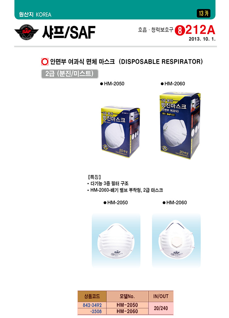 [»þÇÁ]2±ÞºÐÁø/¹æÁø¸¶½ºÅ© ÀϹÝÇü 3ÁßÇÊÅÍ(HM-2050/SAF512W, ºÐÁø/¹Ì½ºÆ®/ºÐÁø¹ß»ýÇöÀå)(20°³ 1¹Ú½º)(DISPOSABLE RESPIRATOR MASK)