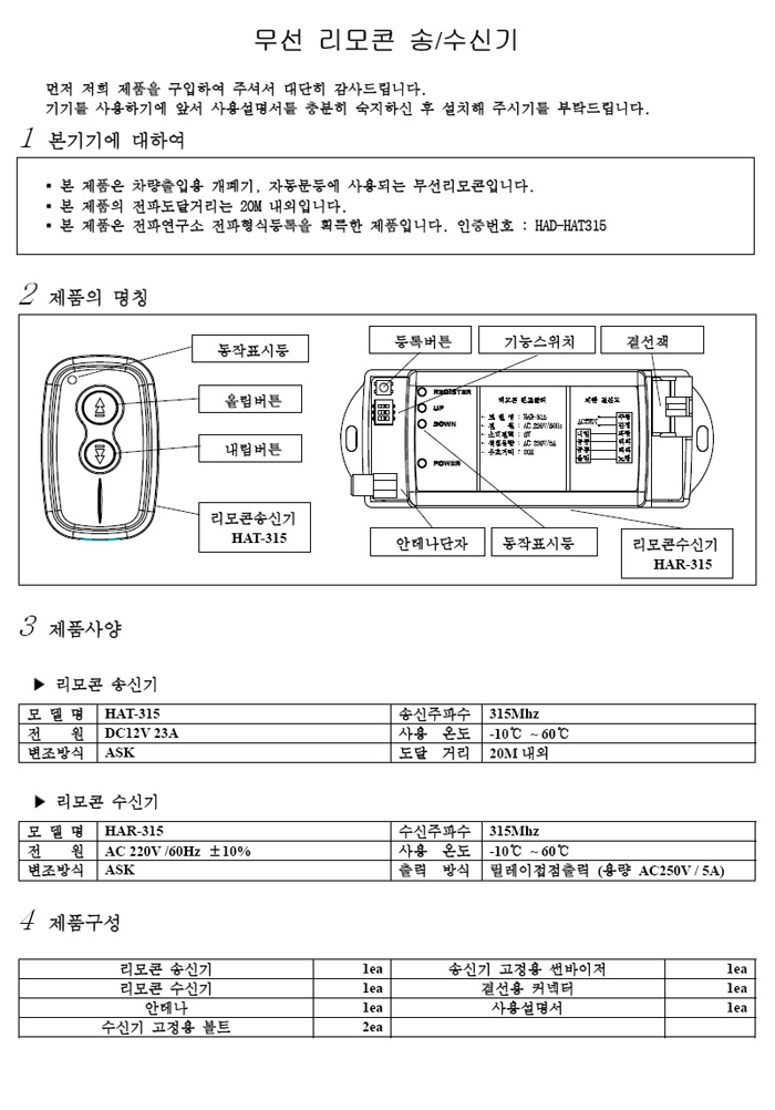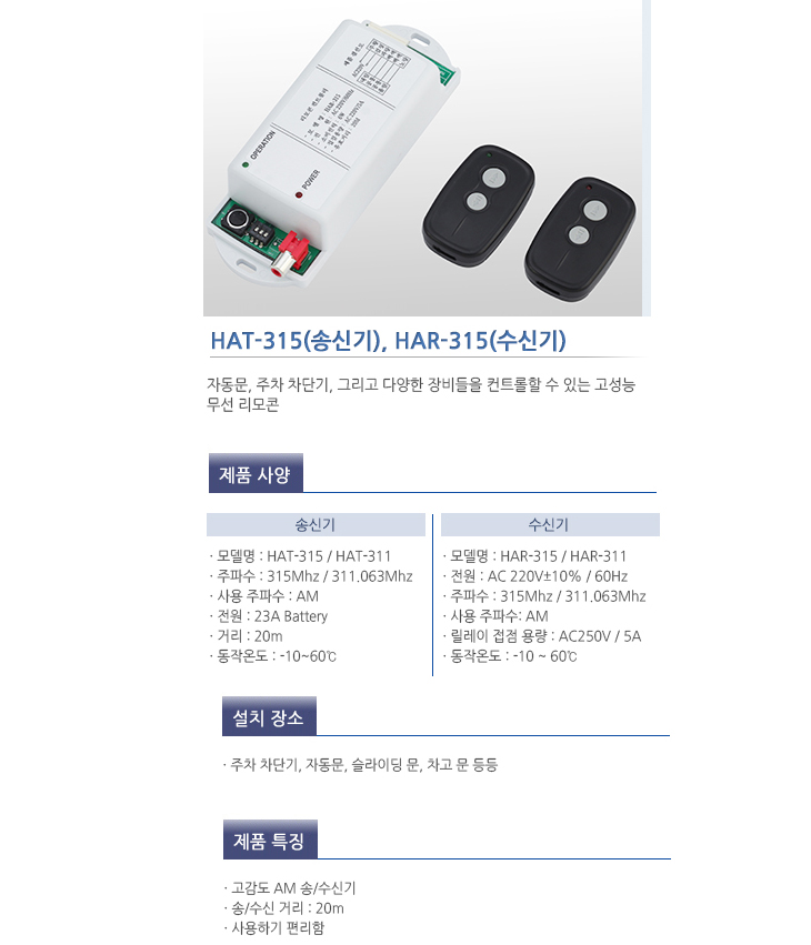 * ȣȯ¸®¸ðÄÁ : HAT-315/HAT-311(¸®¸ðÄÁÀº µ¿ºÀµÇÁö ¾Ê½À´Ï´Ù.)