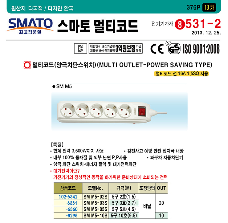 [½º¸¶Åä] ¸ÖƼÅÇ/¸ÖƼÄÚµå/¸ÖƼÄܼ¾Æ® ¾ç±ØÂ÷´Ü½ºÀ§Ä¡ 5±¸(Multi Outlet-Power Saving Type)