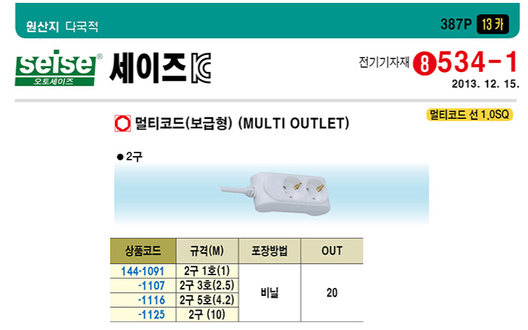 [¼¼ÀÌÁî]¸ÖƼÅÇ/¸ÖƼÄÚµå/¸ÖƼÄܼ¾Æ®(2±¸ ÀϹÝÇü/¼ÒÀü·Â)(Multi Outlet)