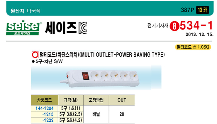 [¼¼ÀÌÁî]¸ÖƼÅÇ/¸ÖƼÄÚµå/¸ÖƼÄܼ¾Æ®(5±¸ Â÷´Ü½ºÀ§Ä¡ºÎÂø)(Multi Outlet - Power Saving Type)
