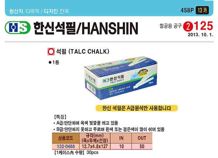 [Çѽż®ÇÊ]¼®ÇÊ(12.7x4.8x127mm)(Talc Chalk)(10°³ ¹­À½)